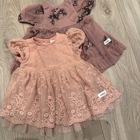 Selger en fine kjoler fra newbie i farge rose og i størrelse 98. Brukte kun en gang. George kjole brukte 2-3 ganger. Selger samlet