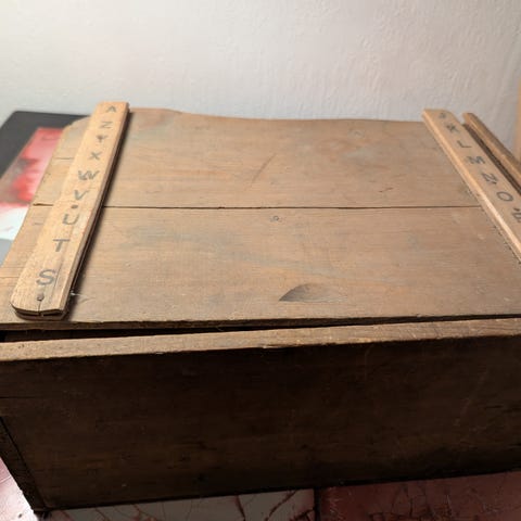 Treklosser med bokstaver og tall i oppbevaringsboks