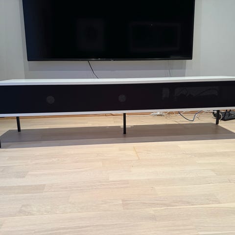 Selger en stilren og funksjonell TV-benk med minimalistisk design. Den er laget i sort tre med detaljer i aluminium, og har stofftrukket front med Soft Open-funksjon og dempere. Frontpanelet åpnes nedover og skjuler romslige hyller til medieutstyr.
