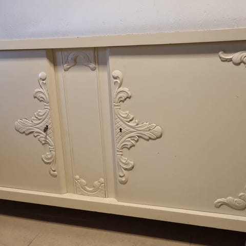 Pent brukt skjenk med 3x3 glasshyller med lys (stikkontakt)