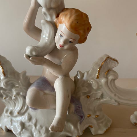 Antique Fine German Blue/White Figurine produsert i Tyskland på tidlig 1940-tallet
