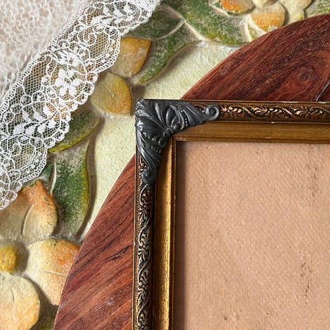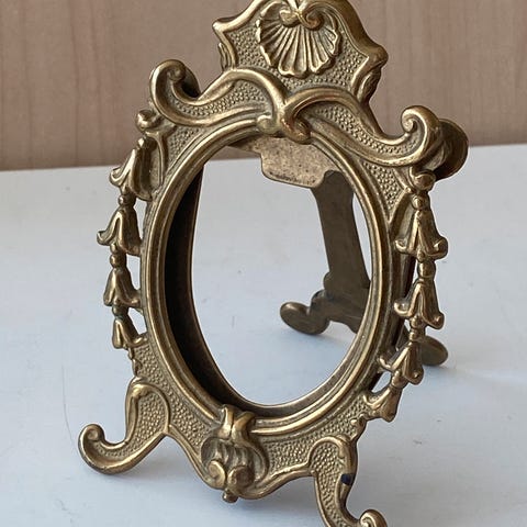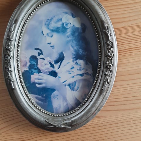 Ovale bilderammer i cherry rød aktig farge. Selv kjøpt på antikk butikk, passer ikke i stil med interiøret hjemme dessverre.