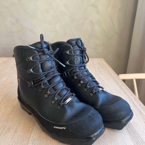 Ny pris 5.200,-. Selges for kr 3000,- Fjellskistøvel fra Crispi med overdel laget i fullnarvet og vannavvisende lær med heldekkende kalosjering. Støvelen er fôret med Gore-Tex® Performance Comfort Footwear Lining holder deg tørr og varm. A.B.S.S. som er et spesielt polstringsmateriale som tilpasser seg den individuelle brukers ankel. Støvelen er laget med en Rottefella sole NNN BC yttersåle.