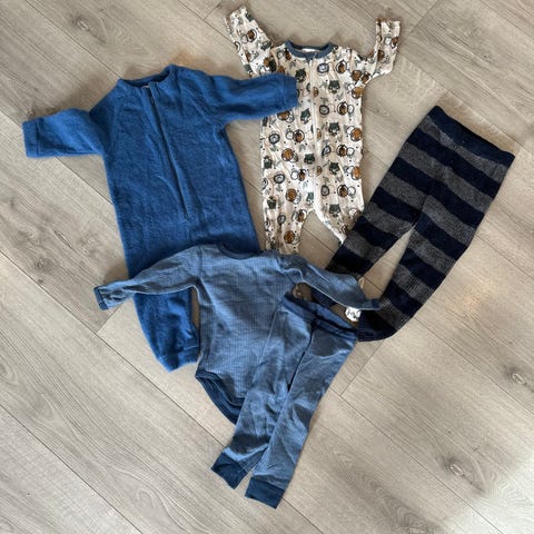 Ullpakke 74-80: 1 pysj, 2 body, 5 strømpebukser - Cubus, Name it, GoBabyGo, MP..