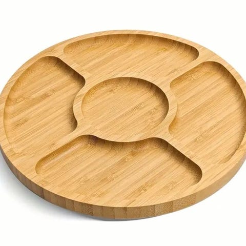 Selges en stor fat fra IKEA i tre, malt hvit, mål: ø 44 cm, pris 250 kroner.