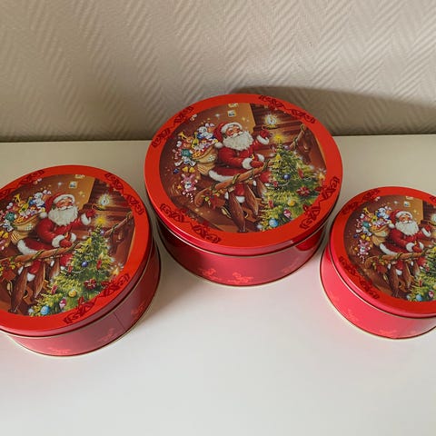3 fine kakebokser, i tre forskjellige størrelser. Kan stables i hverandre når de er tomme.