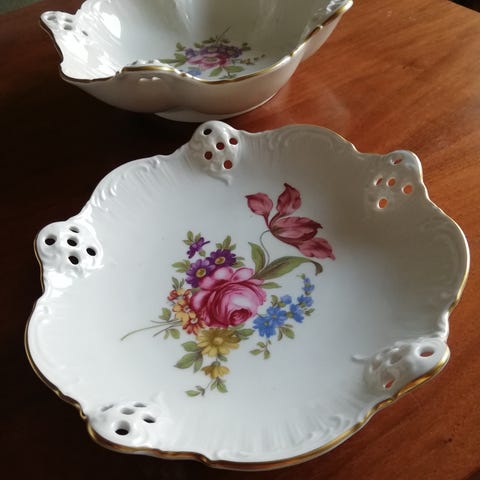 Bladform med integrert hank og relieff kant er typisk for 1950-60 talls design