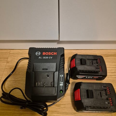 SELGER VÅRE BOSCH BATTERIER OG LADER. NY PRIS PÅ PRISJAKT KR. 4160,-