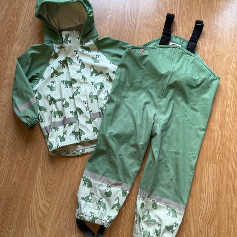 Regntøysett fra PAX i str 98/104 selges. Pent brukt, i god stand.