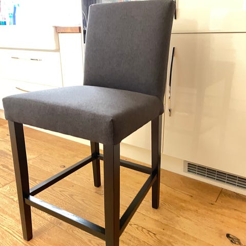 2 barstoler fra IKEA, kjøpte de på Finn.no for et par år tilbake. Trekket kan taes av og vaskes.