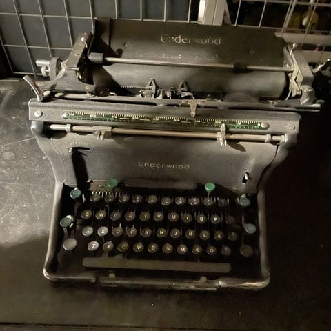 Gammel mekanisk skrivemaskin. Tyskprodusert.