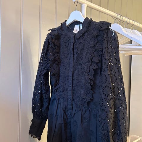 YAS Festkjole i størrelse XS med flerfarget mønster. Laget for kvinner, denne kjolen har lange ermer og en løs passform som går til ankellengde. Materialet er 100% viskose. Jeg er en størrelse S/M men kjolen er XS. Jeg syntes den ble litt kort på ermene og stram på øverste knapp, ellers passer den nok fint til dame i strl S og XS.