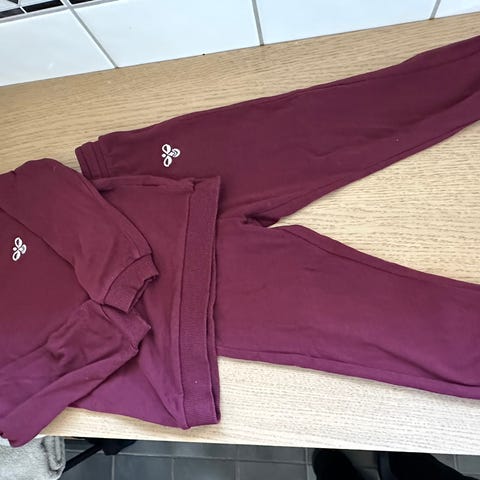 Hummel sett i str 98. Bukse og jakke i velour, med genser i bomull. Genseren har ett lite hull, se bilde