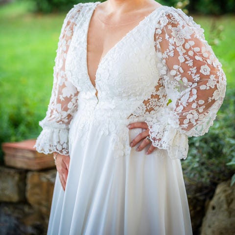 Denne flotte brudekjolen er kjøpt hos Anna Johnson i Lillestrøm, og er pent brukt.