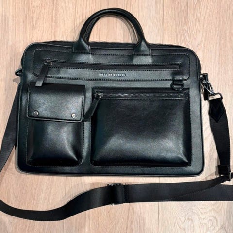 Selger denne praktiske svart skuldertasken fra Lauritzen Bokhandel (modell 26301), perfekt for bøker, laptop eller daglig bruk. Laget i slitesterkt polyester, med flere lommer (mesh-sidepose, frontlommer for organisering), justerbar skulderstropp med spenne og hovedluke med glidelås.