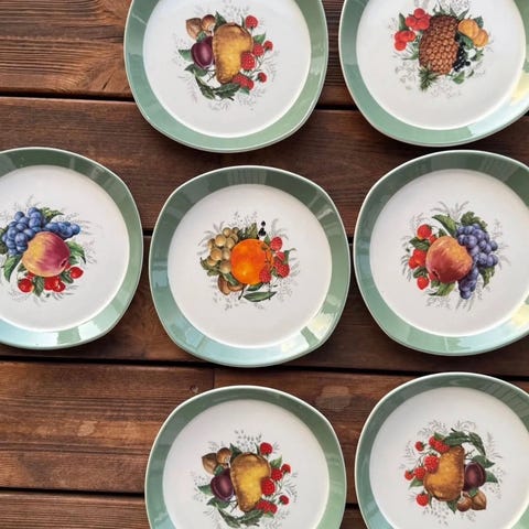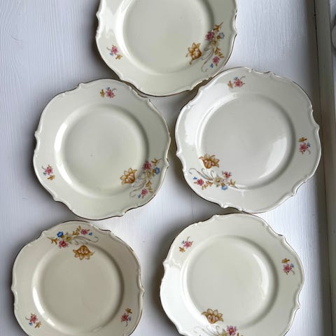 Porsgrund, 5 fargerike sjarmerende, retro dessert tallerkener