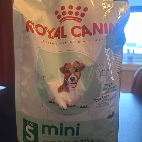 2 kg Royal Canin puppy 2-10 mnd mini. Tatt ca 300 gram. Best før 21/08/26. Nypris 269.