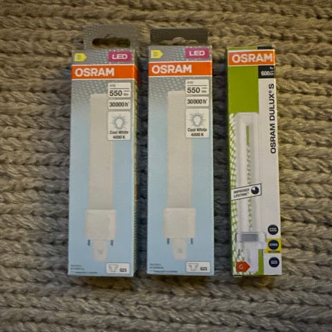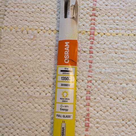 Et av dem er helt ny, kjøpt nå i august. Vi fant ut etter at vi har kjøpt det, at problemet var ikke den forrige lysrør, men strømapparaten selv. Elektrikeren bygget om hele lysopplegget, og dette rør modell passer ikke inn lengre. Så selger vi det, og den "gamle". Tipper det er fortsatt over 20 000 timer bruk i det.