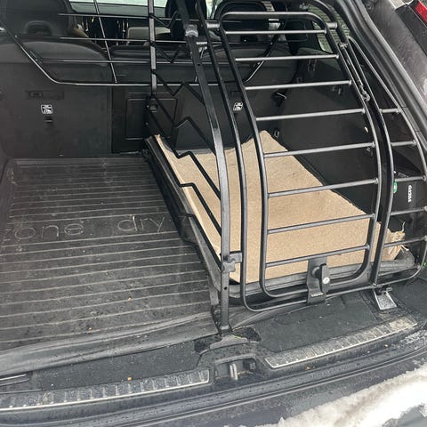Selger et dobbelt hundebur fra jeppe som vi har hatt i en Volvo V70 06 mod og brukt i Toyota Landcruiser 120 06 mod,men da satt vi det på en rampe for å komme opp fra gulvet.