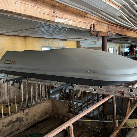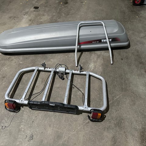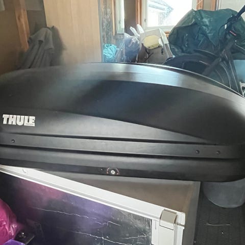 Selger min romslige Thule Touring Alpine takboks. Den rommer hele 430 liter, som burde holde til de fleste formål. Takstativ følger ikke med da jeg trenger det selv. Det følger med fester og to nøkler.