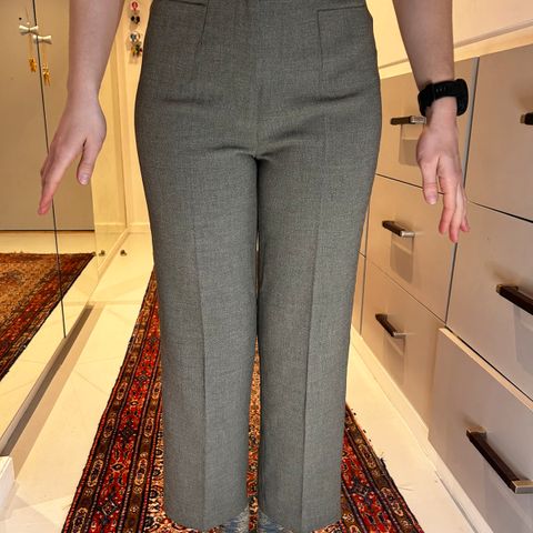 Gerry Weber bukser i størrelse M for kvinner, i grønn farge. Materialet er ull. buksen har et belte som følger med.