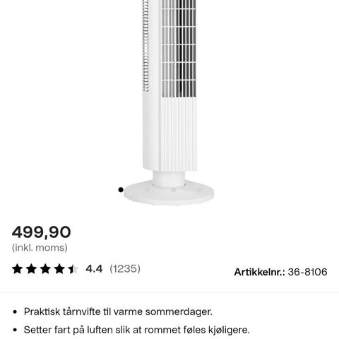 Pemt brukt tårnvifte selges. Selges da vi ikke har bruk for den lenger. Følger egentlig med fjernkontroll, men usikker på hvor den er i skrivende stund.