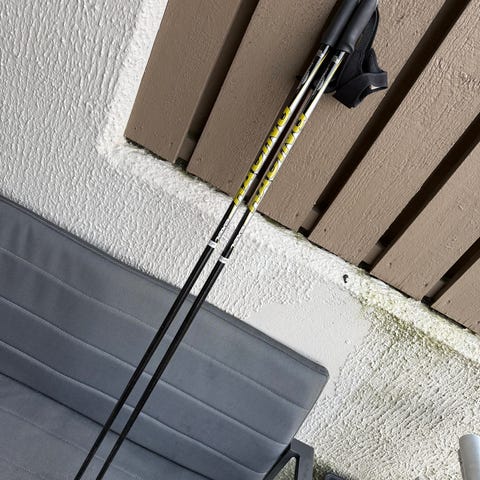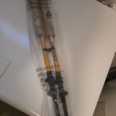 SM- gåstaver 3 delad/ teleskop. Aldri brukt . Kommer med esken .Gummifot,, refleks, hanske ,stillbar.