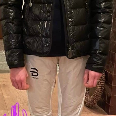 Fint belte i midjen med Moncler merket bak på jakka. Den har god og varm hals og hette med pels.
