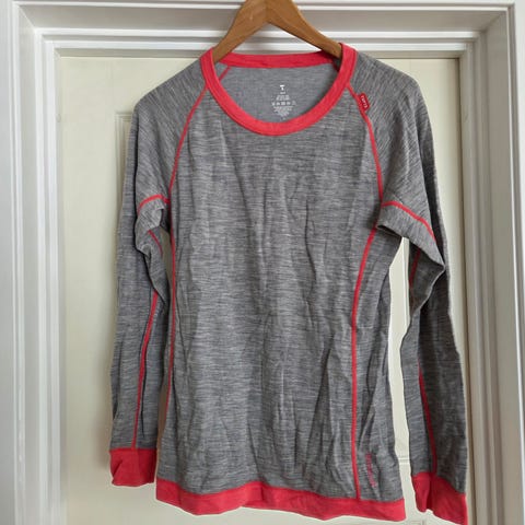 Safa ulltrøye Langermet T-skjorte Dame L Mørkerød Mønster 100% ull