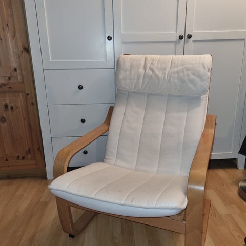 POÄNG lenestol har stilige buede linjer i bøyd tre, noe som gir fin støtte for nakken og komfortabel smidighet. Fotskammelen/Puff er den perfekte følgesvenn og fin å hvile føttene på.