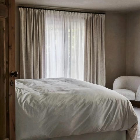 2 lengder H&M Home gardin i lysegrått stoff med et teksturert mønster og innvendig for som mørklegger utmerket.