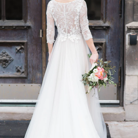 Nydelig brudekjole med fine detaljer fra Watters i modellen Spruce, kolleksjon fra 2022. Orginalt kjøpt på Nicolai brudesalong i København, jeg kjøpte den brukt på Finn :-) Kjolen er renset. Nypris: 29.500.