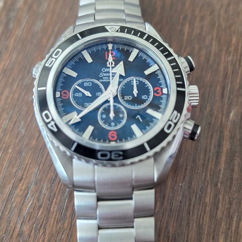 Reimen som er på klokken nå er ikke opprinnelig Omega-reim. Men det følger med 1 ekstra plettfri gummireim fra Omega som har omtrent nypris på kr 6500,-