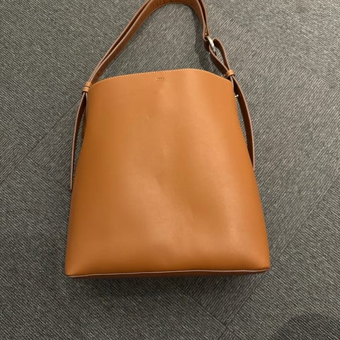 Mango skulderveske for dame, laget av kunstlær i blå farge. Vesken har en justerbar skulderrem, glidelåslukking og en frontklaff med knapp. Innvendig er vesken foret og har god plass til personlige eiendeler. Pent brukt, ingen feil/mangler. Funker fint til å ha "crossover".