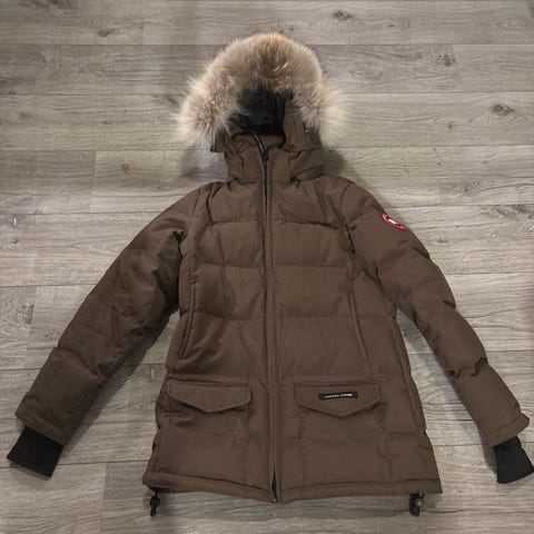 Canada Goose dun parkas I størrelse S, unisex. Jakken har hette med pelskant. Nylig renset .Ny pris 17 000kr