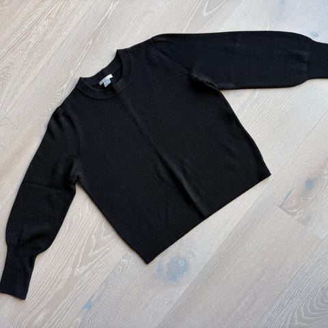 Genseren er pent brukt et par ganger og nesten som ny, Det er litt vanskelig å få fram glitteret på bilder. 38% akryl, 37% viskose, 17% polyester, 8% metallisk garn.