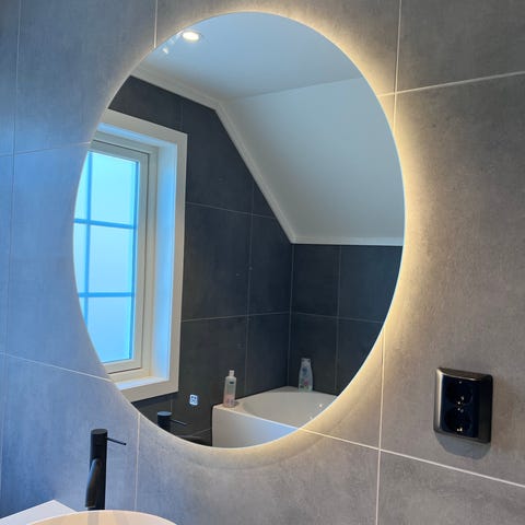 Talgø Speil med målene 120 x 80 cm. Speilet har et enkelt og moderne design med innebygde lys.