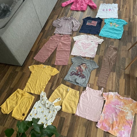 Alle er kjøpt nye og brukt av ett barn. Stort sett i god stand -se bilde av liten flekk på den ene t-skjorta.