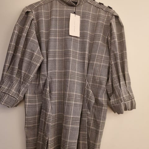 Ny Zara Basic hverdagskjole i størrelse L, rosa farge. Laget av 100% polyester. Kjolen har lange ermer og en enkel design med en dekorativ detalj på forsiden.