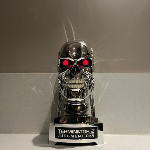 Inneholder terminator 2 på blu ray som ligger inni hodet.