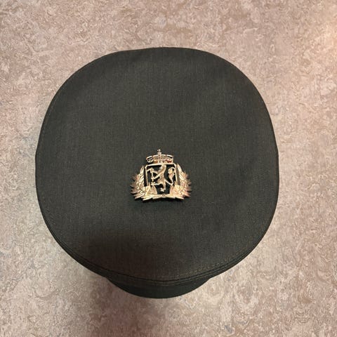 HUFA militærlue i mørk grønn farge med metallisk emblem foran. Luen har en fast skygge og detaljer i lær rundt kanten. Innvendig fôr med HUFA-logo og størrelse 58. Passer til serviceuniform