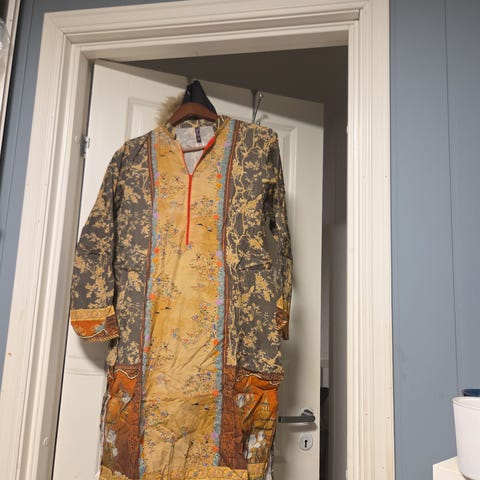 Selger denne brune one piece jilbaben. Den er ca 140 cm lang. Den har en liten rift på siden.