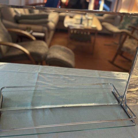 1 stk eksklusivt rundt speil fra Fired Earth for baderom selges. Diameter 50 cm (20 tommer). Pent brukt, men et bitte lite skår på toppen (se bilde).