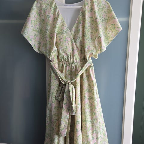 Ny Floyd sommerkjole i størrelse 38, blå farge med blomsterprint. Kjolen har kort erme og er laget for kvinner. Egnet som lett og komfortabelt plagg for varme dager.