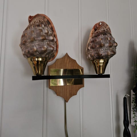 Vintage bordlampe med skjellmotiv fra midten av århundret - Nautisk dekor, stranddekor