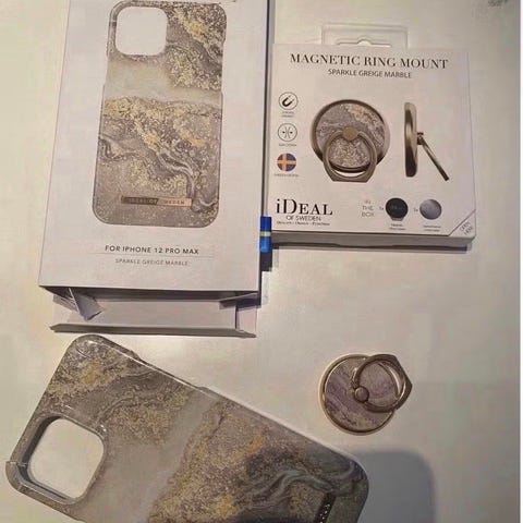 IDEAL OF SWEDEN Telefondeksel med marmor mønster. Dekselet har en kombinasjon av beige, grå og grønne toner som gir et naturlig utseende. Egnet for å beskytte telefonen mot riper og mindre støt. Materiale og størrelse er ikke spesifisert, men dekselet har utskjæring for kamera og knapper.