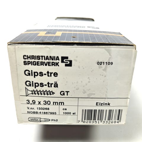 Treskrue med forsenket hode og seks skjærende riller for bedre forsenking. Fiberskjær i spissen og fresegjenge for lettere skruing. Av overflatebehandlet stål med korrosjonsklasse C4. Torxspor, to bits medfølger. Til bruk innendørs og utendørs. EN14952.