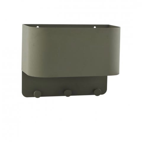 House Doctor vegghengt grønn hylle metall med oppbevaring og knaggrekke.