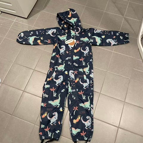 Nordbjørn skalldress i str 116 med flerfarget mønster. Passer for gutt. Plagget har glidelås foran og elastiske mansjetter ved bena. Materialet ser ut til å være slitesterkt og egnet for utendørs bruk. Mangler fotstrikk!