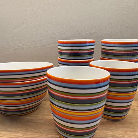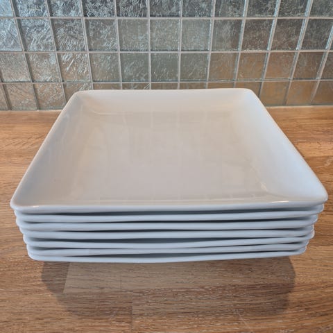 Pent brukt, en av tallerkenene har hakk. Selges samlet. Fargen beige/grå